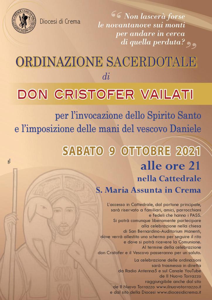ORDINAZIONE PRESBITERALE DON CRISTOFER VAILATI Posted on 29 settembre 2021 by servizio diocesano vocazioni