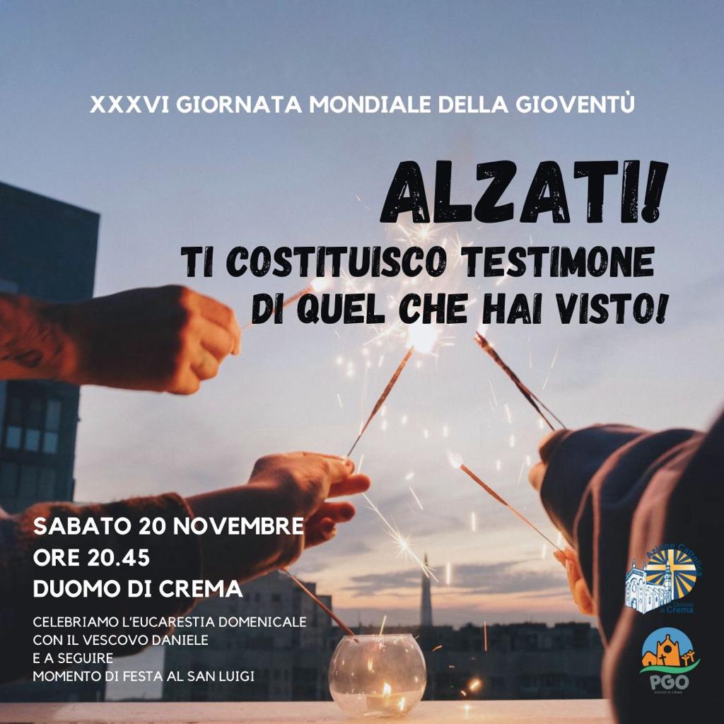 “Alzati! Ti costituisco testimone di quel che hai visto!” (cfr. At 26,16): è questo il tema del Messaggio del Santo Padre ai giovani in occasione della XXXVI Giornata Mondiale della Gioventù 2021, che sarà celebrata il prossimo 21 novembre nelle Chiese locali di tutto il mondo.