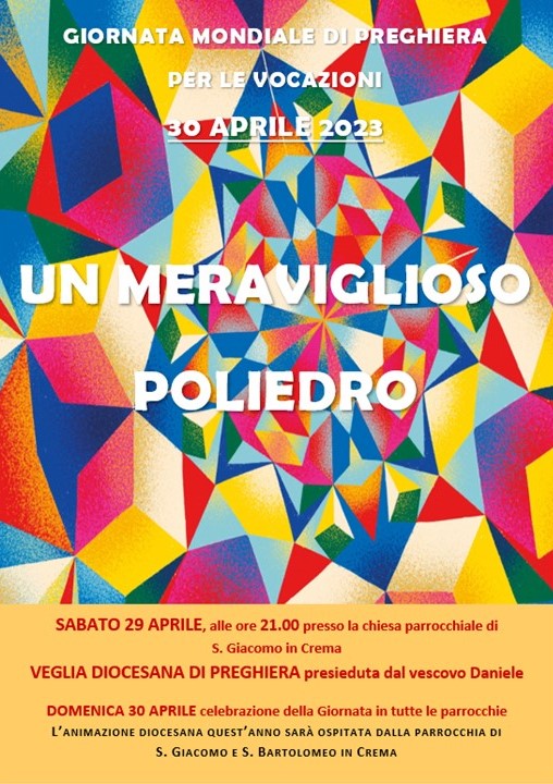 Domenica 30 aprile, tutta la Chiesa vivrà la giornata di preghiera per le vocazioni. Il titolo scelto per quest’anno è “Un meraviglioso poliedro” a sottolineare che la vocazione non riguarda solo preti e suore, ma è una questione che interpella tutti. Non esiste vocazione che non sia comunitaria, non esiste una scelta d’amore che non vada ad intercettare anche altri. La forma che ogni uomo prende non è altro che la migliore forma di sé, attraverso la quale può portare al mondo l’amore di Dio.